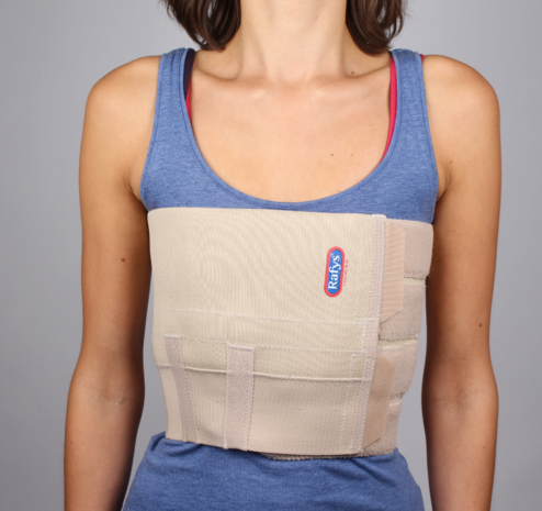 Een elastische brace van 22,5 cm hoog met een klitbandsluiting. De brace kan een nuttige rol spelen bij de fixatie van pijnlijke en gekneusde ribben. Afhankelijk van de ernst van de ribkneuzing kan de fixatie meer of minder noodzakelijk zijn, en kan de spanning individueel worden afgesteld met een klitbandsluiting.